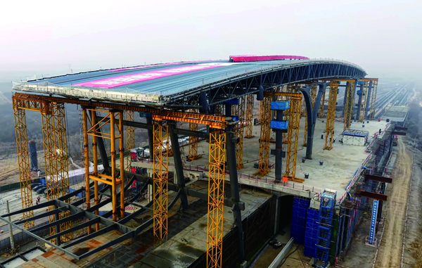 近日,津潍高铁东营南站项目(右图)顺利完成跨度195米、重1400吨的钢屋盖单元滑移作业,标志着该站跨运营施工取得关键突破。